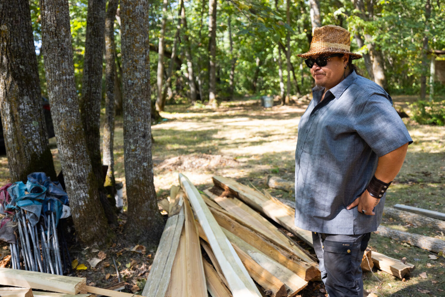 Kevin Rosebear (Red Lake Ojibwe), canoe building apprentice.