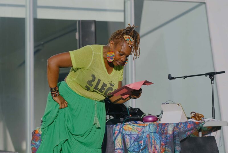 Queen Drea is a sound alchemist, mixing sonic potions laced with looped vocals, jagged rhythms, and found sounds. She has designed sonic worlds for Pillsbury House+Theatre, Penumbra Theater, dance companies, BrotherHood Dance, Ananya Dance Theater, international artist Jaamil Olawale Kosoko and other dance and theater artists. Queen Drea has created interdisciplinary work about depression in the Black community, African creator goddess Mawu and an exploration of what life comes from Black wombs. She is a 2022 McKnight Composer Fellow, 2019 PH+T Naked Stages Fellow, 2019 Jerome Finalist and 2017 ACF Emerging Composer awardee.