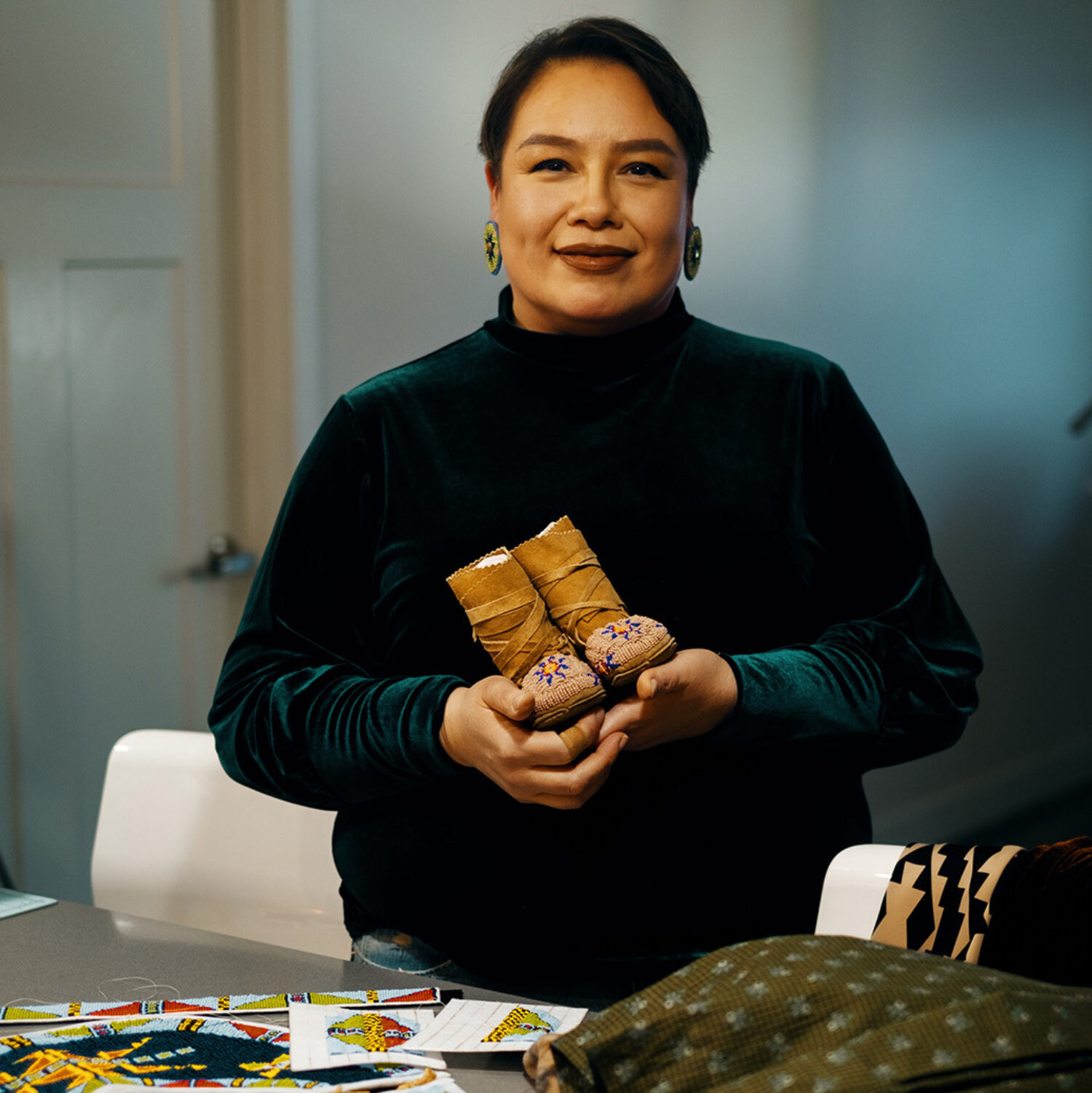 “My most favorite thing I think that I’ve ever made was the first pair of moccasins for my daughter, because I always dreamed of being a mom,” said Raine.